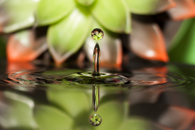 Фотографу было любопытно, как ведут себя капли воды и как их «заморозить» с помощью камеры. Съемка такого быстротекущего процесса несет множество трудностей. Много времени заняло создание внешней обстановки и антуража. Поведение этой маленькой капли очень увлекательно на снимке. Нас завораживает не только «прыгающая» капля, но отражения которые мы видим в ней, на поверхности воды и в возбужденных волнах, а так же резкость самого снимка.